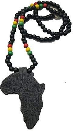 Wooden Africa Map Big Large Rasta Color African Women Men Necklace 36 Inch Long